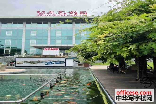 园区形象:全玻璃幕墙,园区绿化环境好