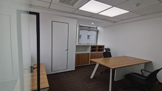 交房标准:logo背景墙,办公家具,独立老板间,独立会议室,文件柜